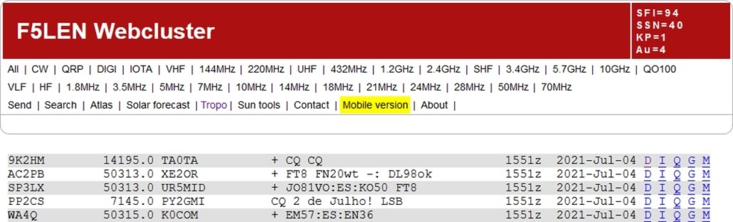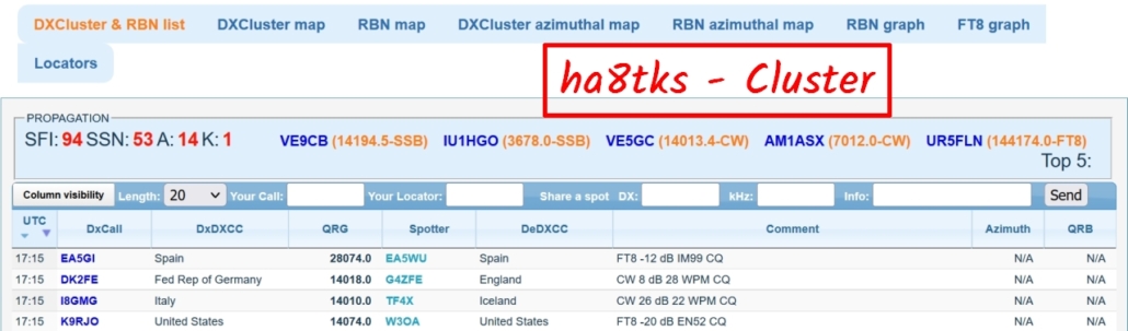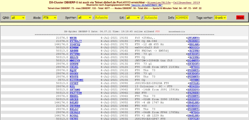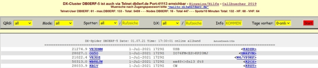 ⇐ aufrufbare DX-CLUSTER ⇓