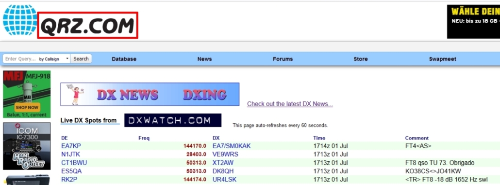 – welcher Funkamateur | zu welcher Zeit | welches Funkrufzeichen | auf welcher Frequenz – (QRV – betriebsbereit) ist | bzw. gehört hat.